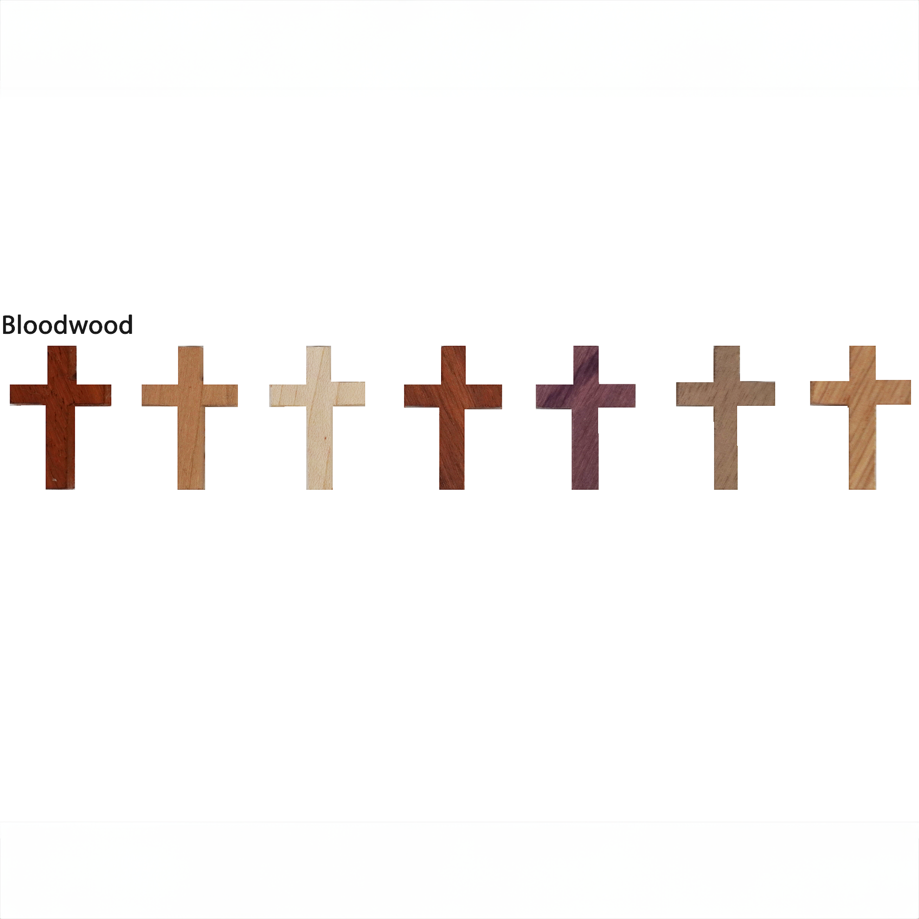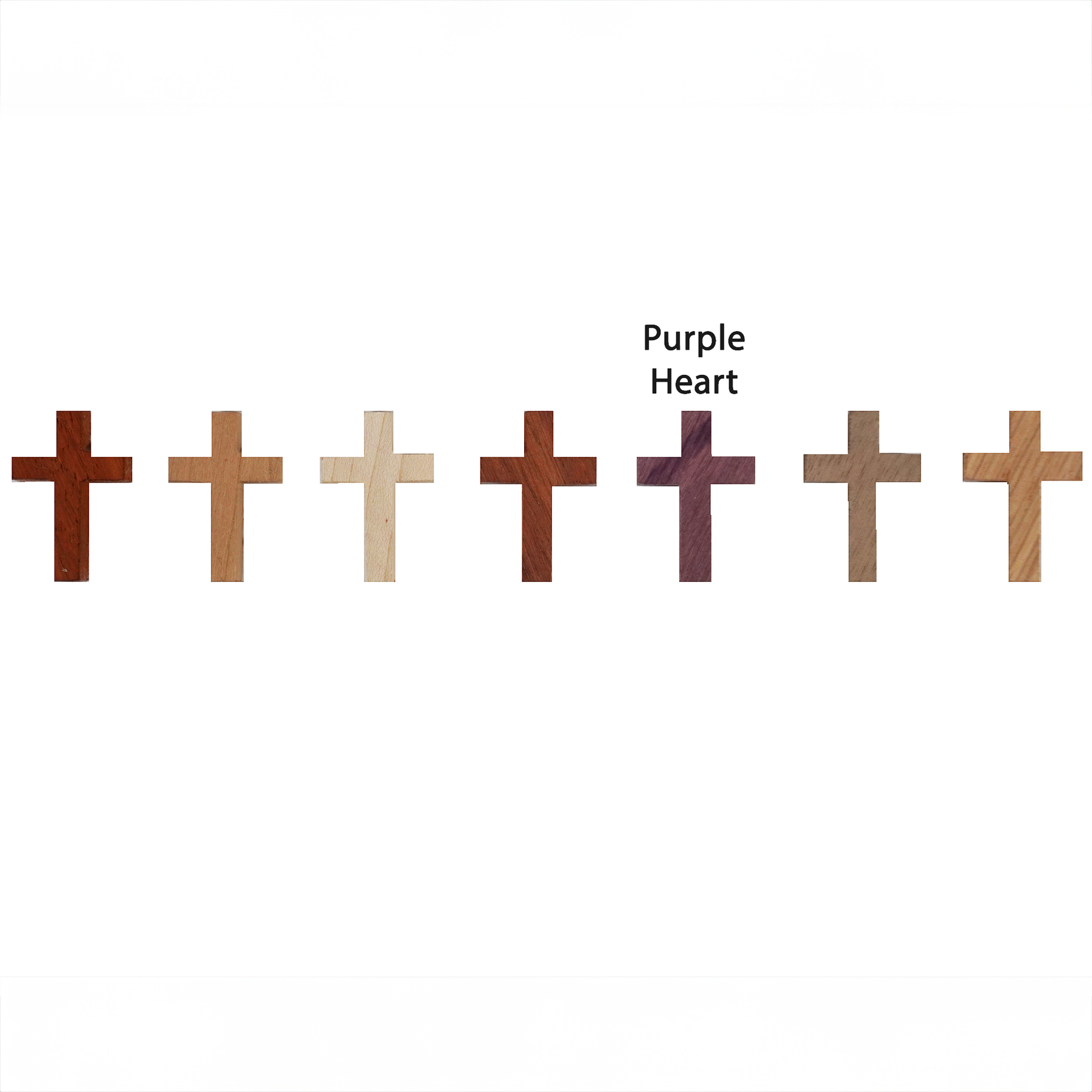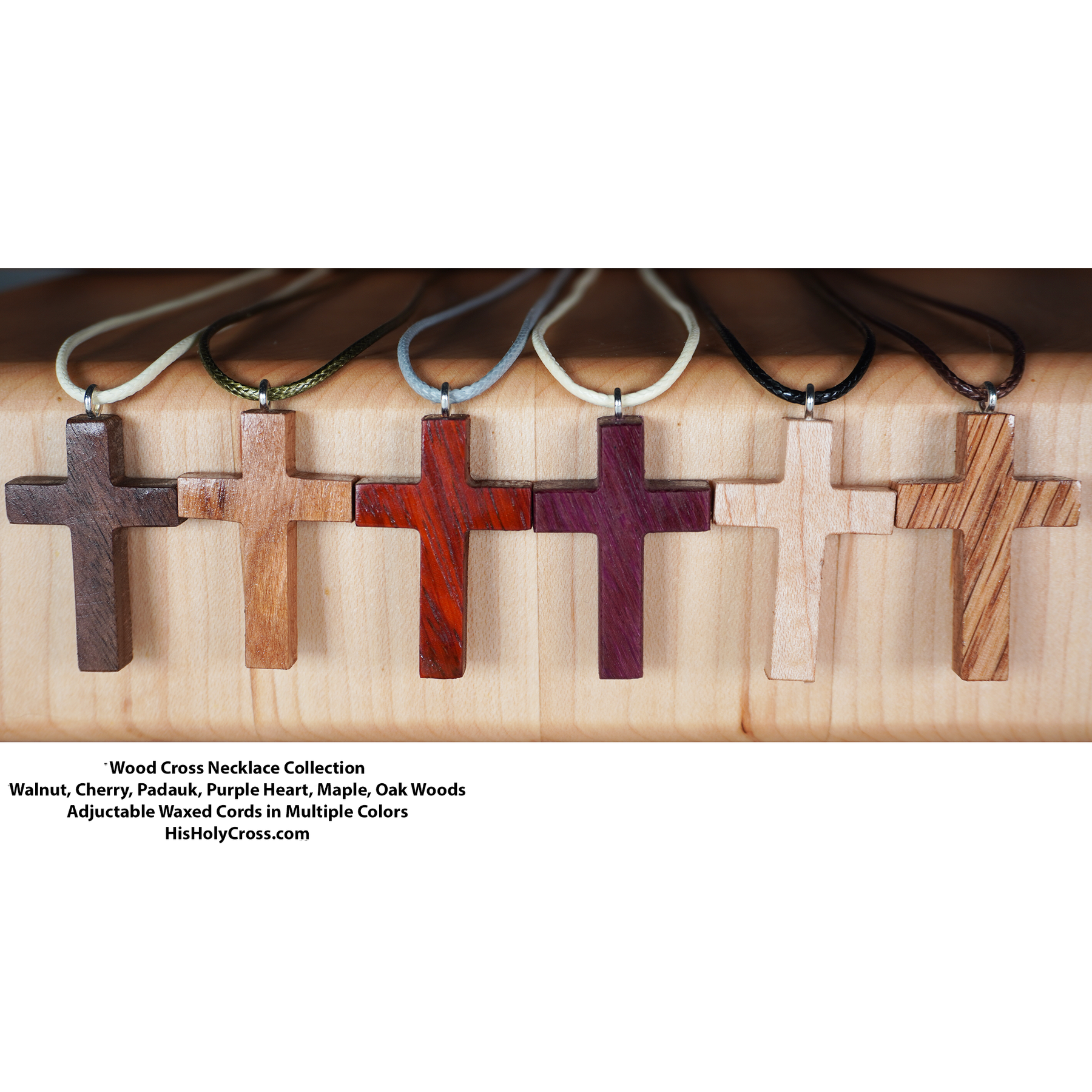 The Solid Wood Cross Necklace is a beautiful and simple design.  Cut from a single piece of wood. No joints or glue due to the one piece construction.  Crafted in Maple, Cherry, Walnut, Purple Heart (Exotic), Red Oak, Padauk (Exotic) and Bloodwood (Exotic).
