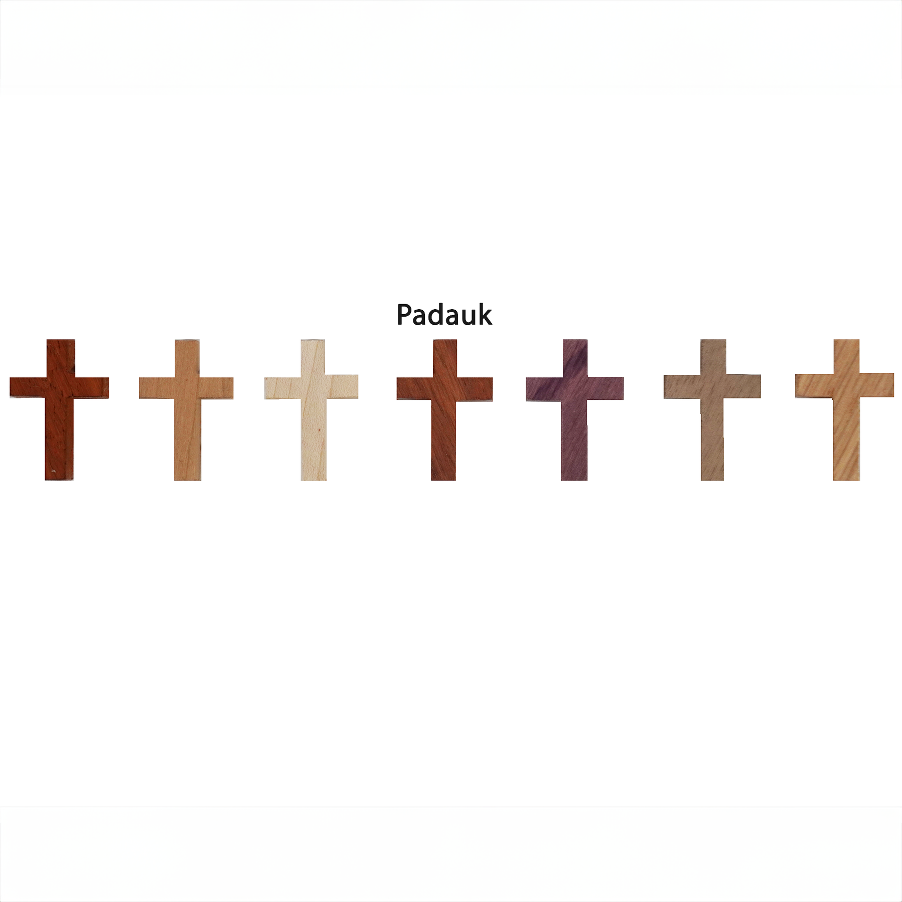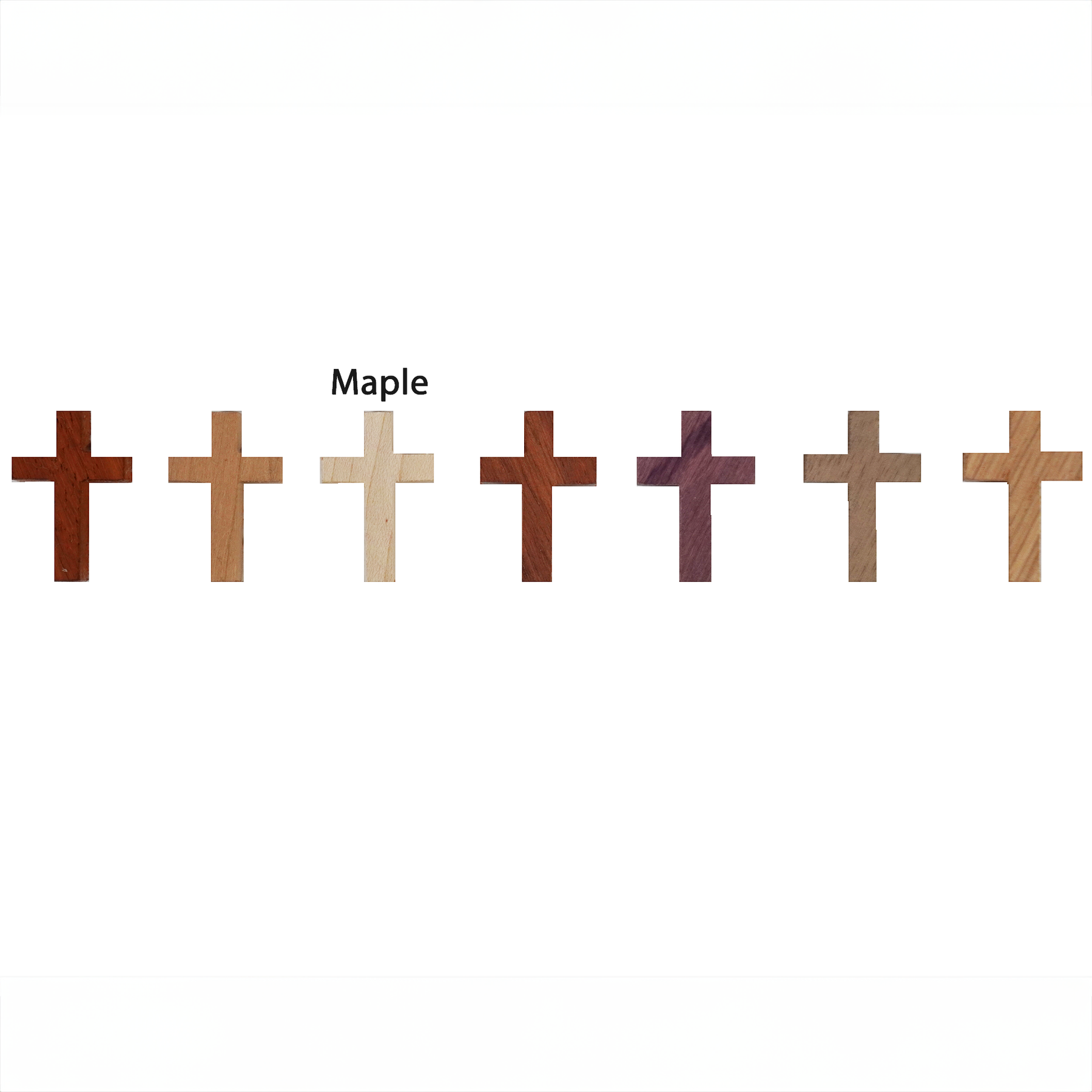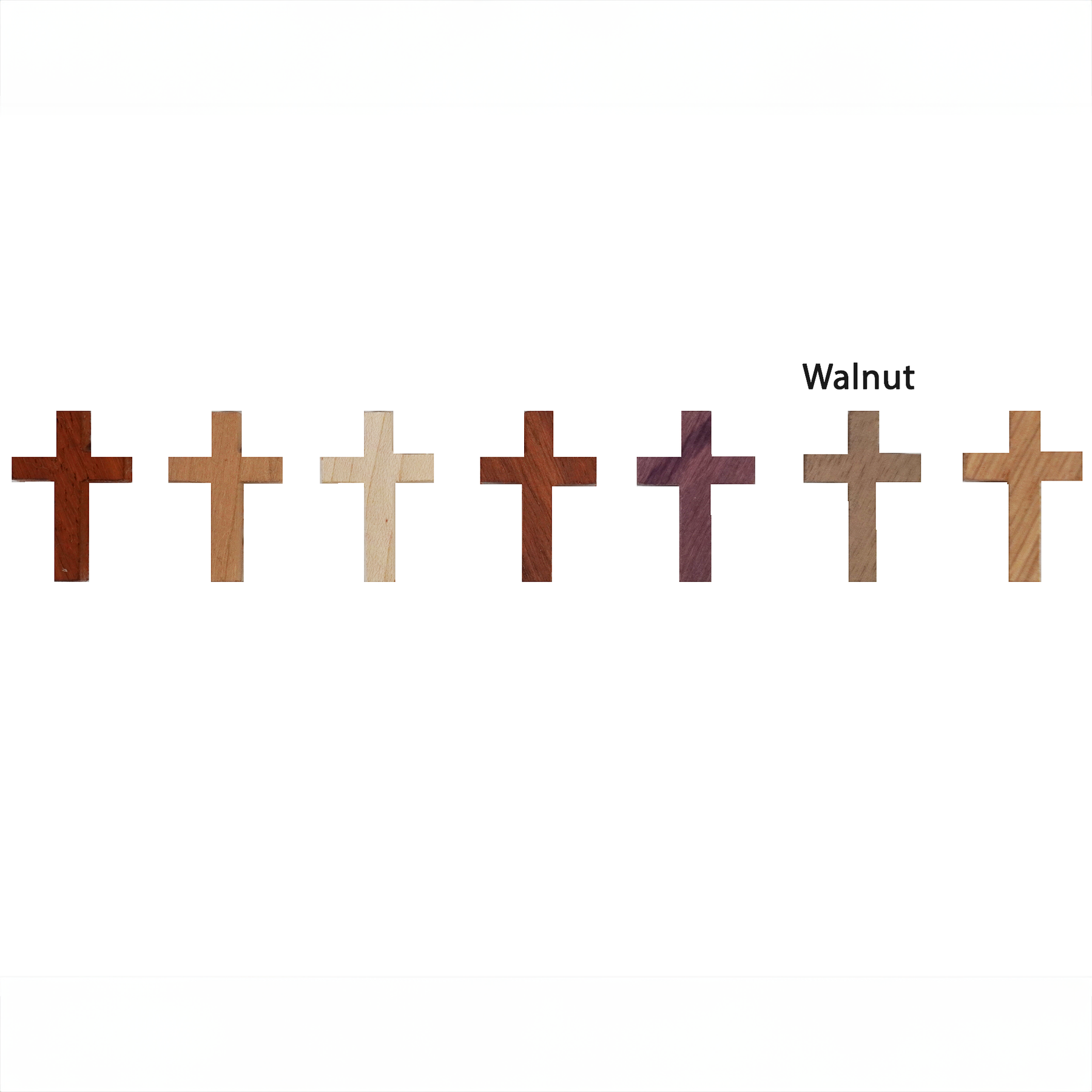 The Solid Wood Cross Necklace is a beautiful and simple design.  Cut from a single piece of wood. No joints or glue due to the one piece construction.  Crafted in Maple, Cherry, Walnut, Purple Heart (Exotic), Red Oak, Padauk (Exotic) and Bloodwood (Exotic).